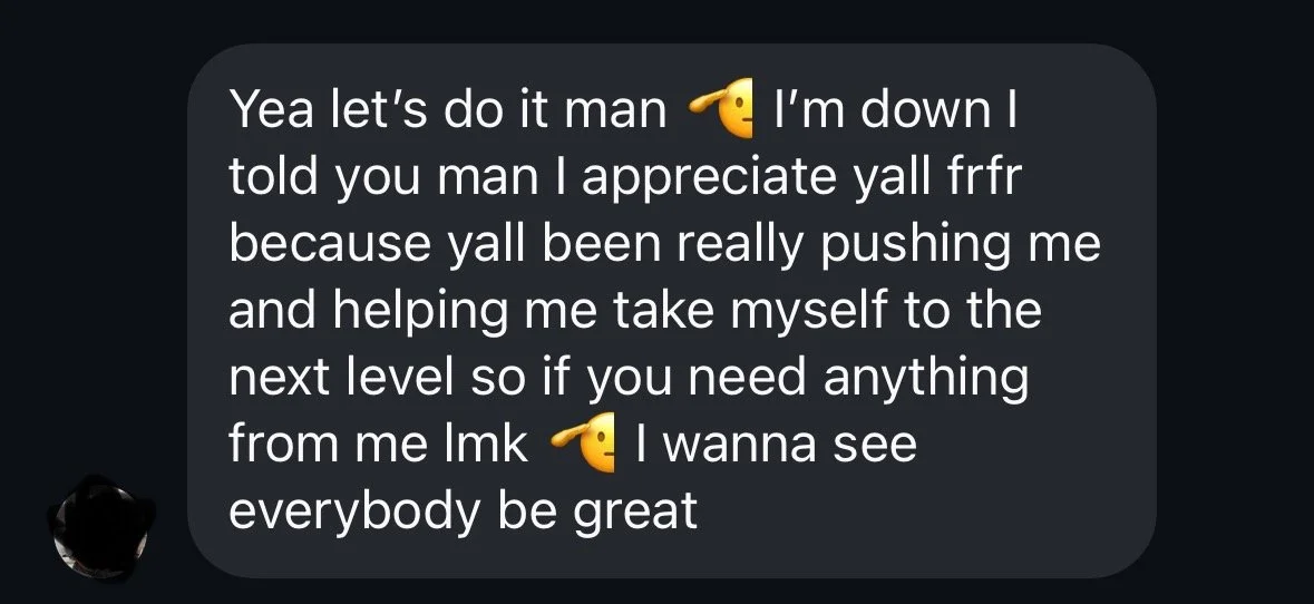 The purpose of this tier is to surround yourself with peers who are pushing through the same stage of building momentum and refining systems.