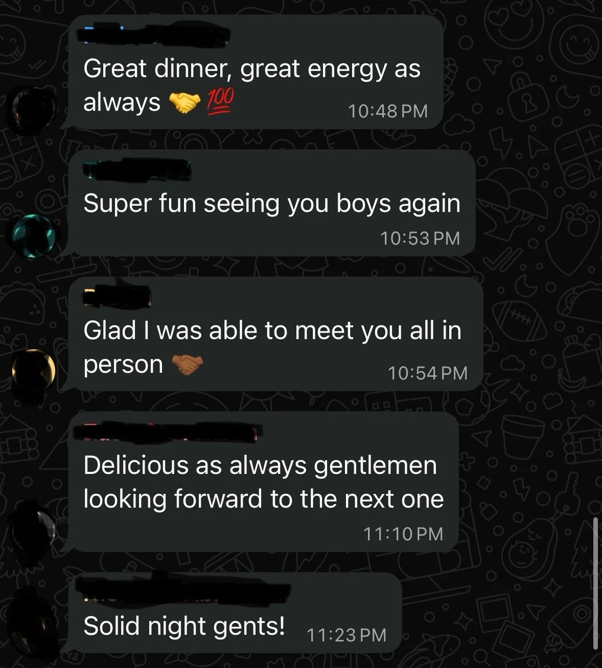 It’s not just networking — it’s breaking bread with the people who push you to level up.