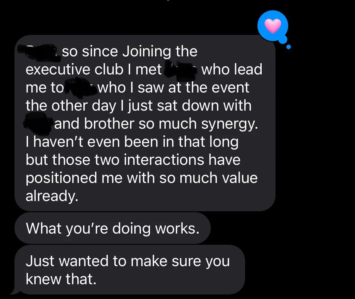 “Ever since I’ve joined The Executive Club my life has done nothing but benefited from the group. Everyone is trying to grow and help everyone else grow with them. The amount of value and accountability you get from this group is like nothing else you will find.”